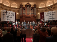 From our friends at Fossil Free Culture in the Netherlands: https://www.fossilfreeculture.nl/portfolio/dissonance-act-2-afterthough… 'As the last notes fade away, two large banners depicting a poem are placed on stage at the Concertgebouw. Fossil Free Culture NL collaborated with award-winning poet Hannah van
